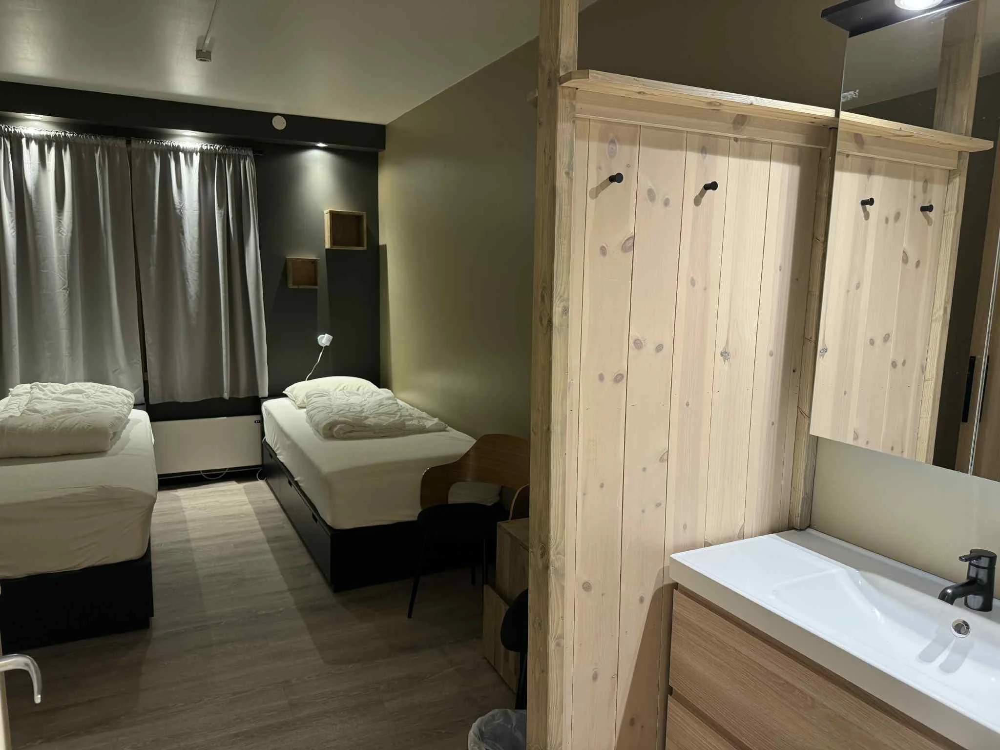 Hos oss kan du velge mellom enkle rom for deg som reiser alene, eller dobbeltrom for to. Alle rom har god plass, komfortable senger, klesskap og egen vask. Dusj, toalett og fellesstue finnes på hvert internat – perfekt for både kortere og lengre opphold.